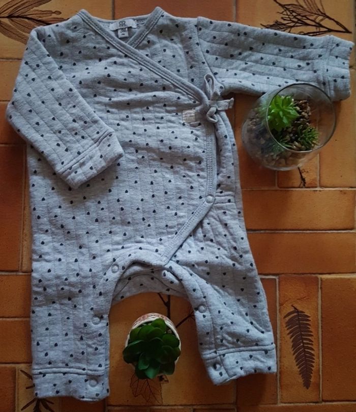 👶 Pyjama mixte en 3 mois, porté 2 fois, 1ére main, pression sur tout le long + entre les jambes idéal pour nos p'tits pieds bots 👣