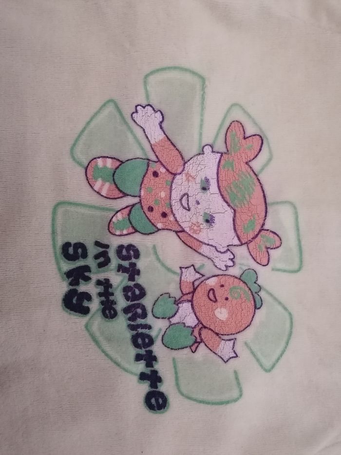 Lot de 2 pyjamas 3 mois Le premier de couleur vert en bon état général sans marque dessin un peu craquelé cf photo Le deuxième rose et blanc de la marque Sanrio en bon état général avec ouverture devant pour faciliter le change manque un peu de peinture sur les pressions du au repassage voir photo