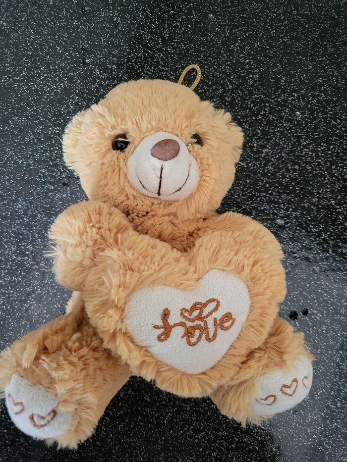 Ours en peluche tout doux. environ 24 cm Inscription love.