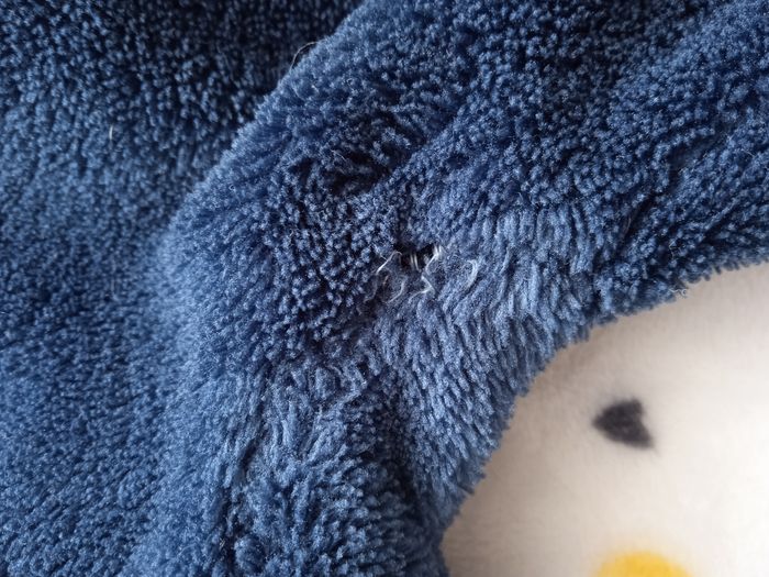 Très bon état, mis à part qu'il y a une tâche au col et légère déchirure entre les jambes