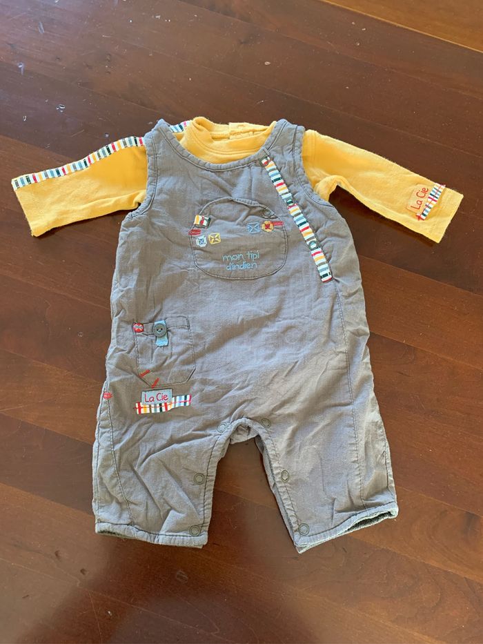 Vends salopette grise et tee-shirt manches longues moutarde en très bon état