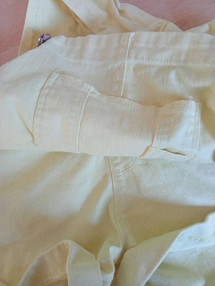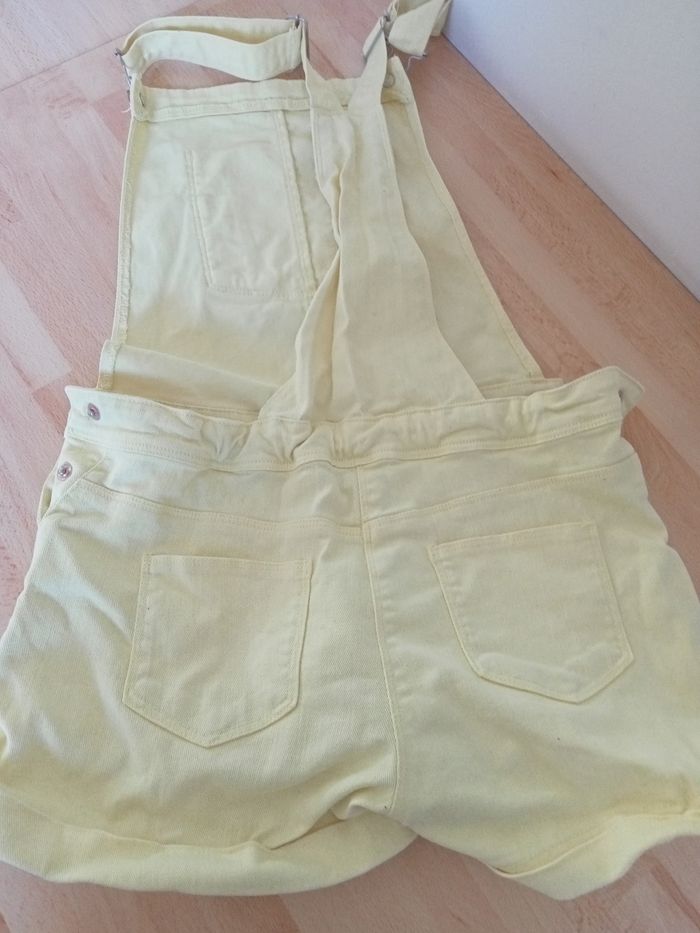 Salopette short de couleur jaune pâle ,le short est réglable à la taille