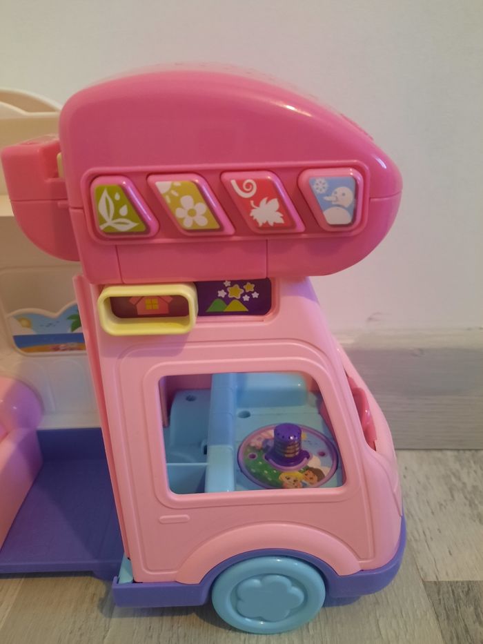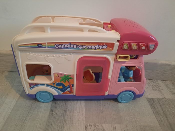 Très bon état. Projections lumineuses au plafonf ! - 3 Tut Tut copains inclus : Daphné maman randonnée, Peter papa campeur et Zoé joli bébé - 4 accessoires inclus : deux fauteuils et un feu de camp. - 3 modes de jeu : Découvertes des couleurs et des saisons, Camping Fun et Musique - Plus de 180 phrases, chansons, mélodies et sons - 1 Rond magique