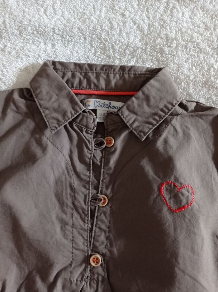 Robe marron manche courte avec colle avec motif petit cœur trois boutons taille élastique âge 12 mois 74 cm voir photos - photo numéro 10