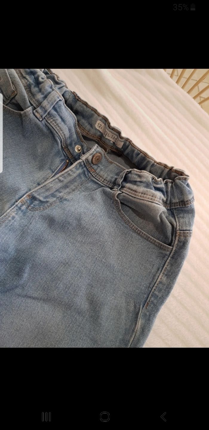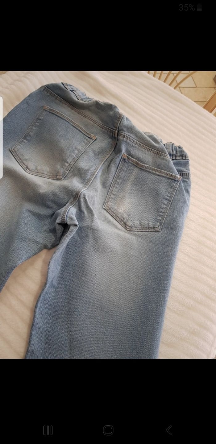 Jean slim bleu clair. Avec possibilité de le régler à la taille. Petites taches au niveau des genoux ( voir photo)