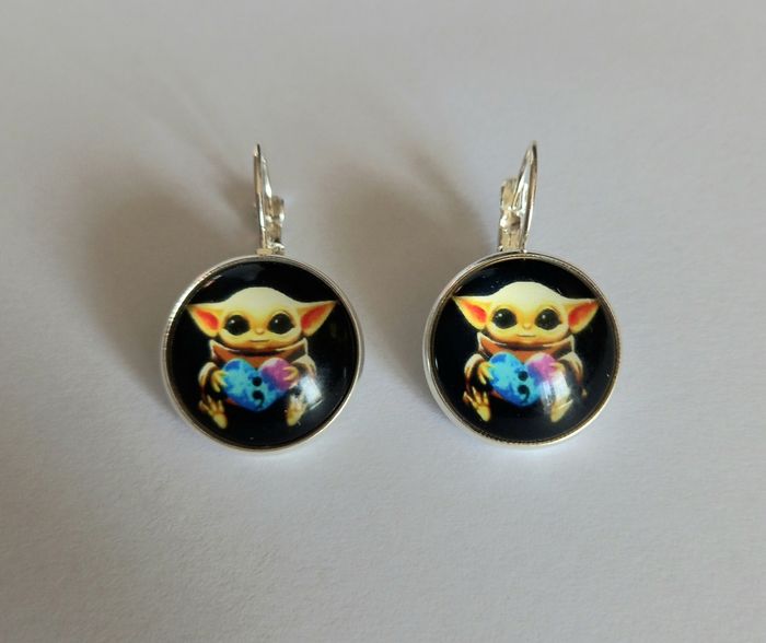 Boucles d'oreilles dormeuses bébé yoda - photo numéro 1