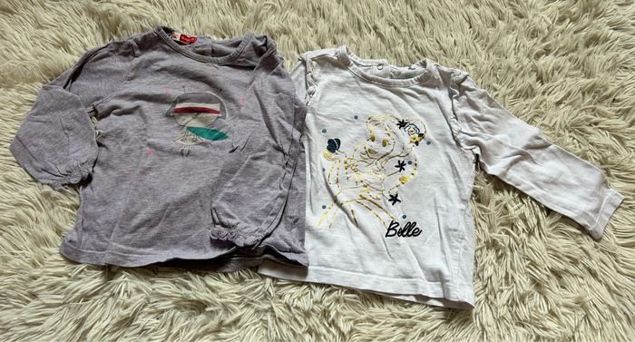 • Lot de 2 teeshirts manche longues Taille 18 mois Un Disney ; belle Un du pareil au même (Je Donne un 3ème qui a des petites oreoles)