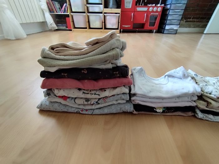 pyjama 7 bodys ML 8 tee shirt ML 5 legging/jogging 3 robes 1 pull 1 veste sans manche fourrure 1 collant
