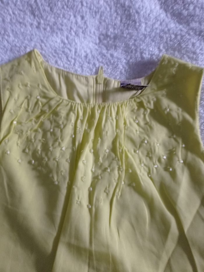 Robe jaune à volant fermeture dans le dos magnifique petite robe avec brillant en haut du devant dans le dos fermeture cette robe est doublée marque tape à l'oeil .86 cm - photo numéro 10