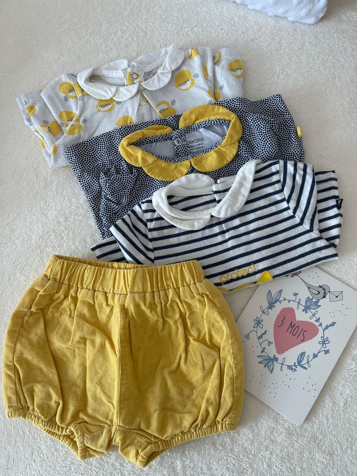 Ensemble dans les tons jaunes obaibi Un short et trois tee shirt manches longues