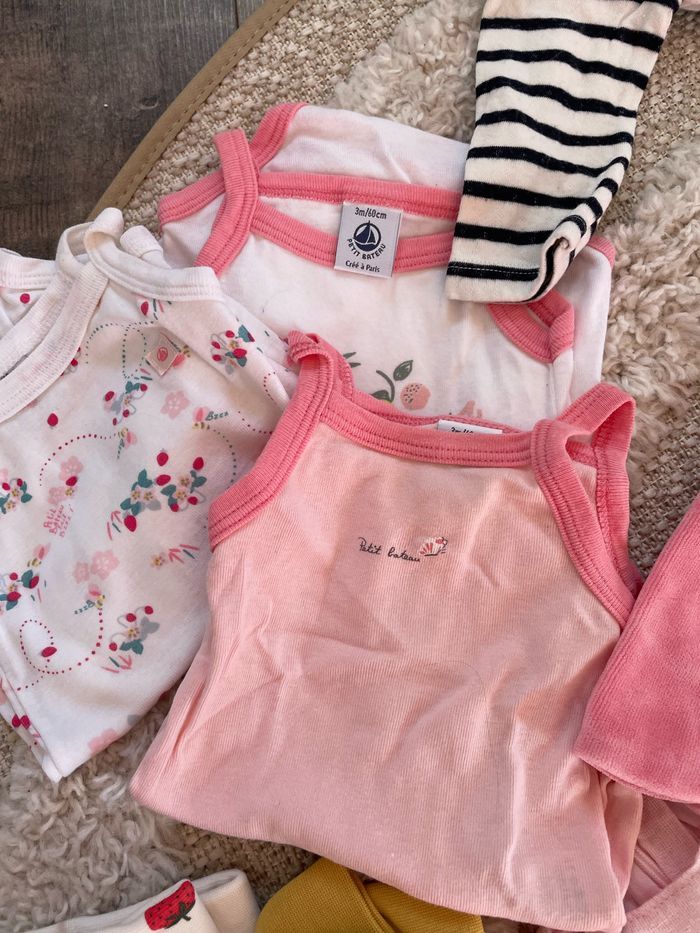 Lot de 15 articles bébé fille Taille 3 mois Tout est en très bon état sauf la tenue Petit bateau marine plus en bon état ( pas de taches ni trou) - 2 pyjama ( pré maman et Petit Bateau) - 3 bodies bretelles Petit Bateau - combinaison Tartine et Chocolat - 2 robes : kiabi et Billiblush - 4 leggings H&M et kiabi - 2 tee shirt kiabi - une robe legging intégré Petit Bateau #lotvetementsbebe #lotbebe #lottroismois #15articles #petitbateau #hm #kiabi #tartineetchocolat #billieblush #robebeb