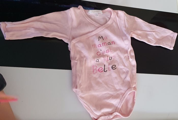 +Bodie manche longue taille 6 mois en bon état, de la marque Babibou. Il y a une petite tâche ( voir la 2ème photo )