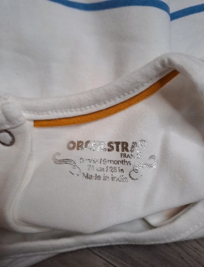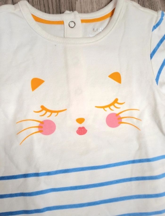 🌸 t-shirt Orchestra blanc rayé bleu petit chat 🏷 taille 9 mois 71 cm ℹ️ en parfait état (Cel)