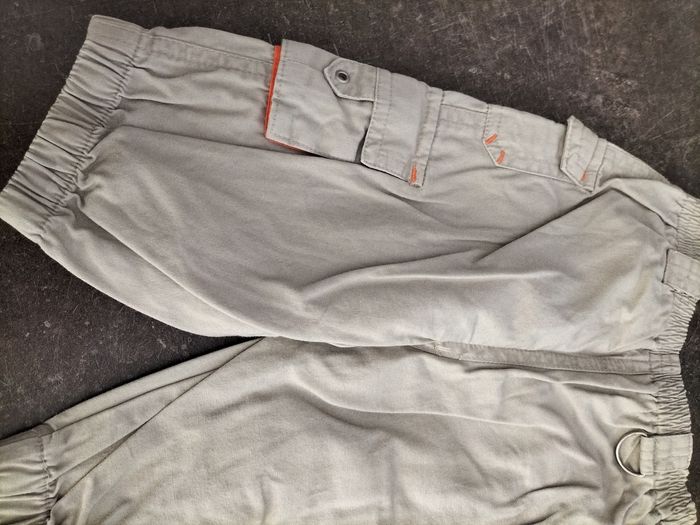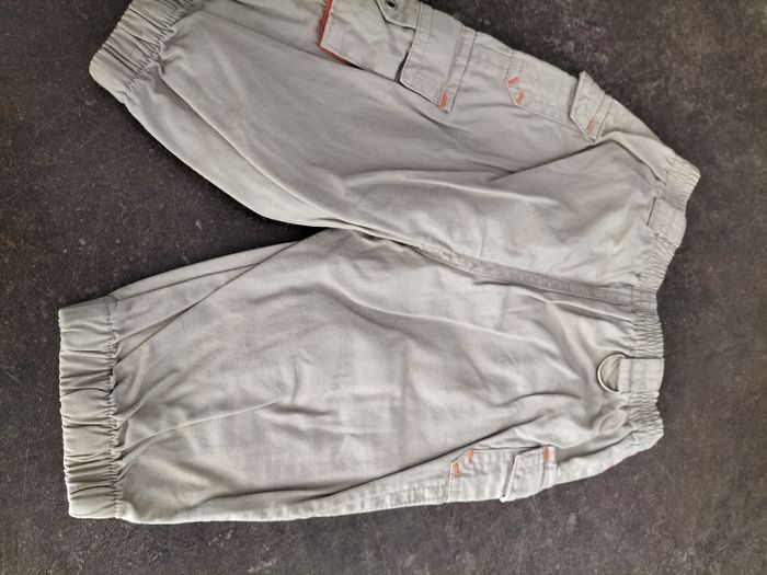 Pantalon élastiqué en bas de chevilles, en toile beige, taille élastiquée, en très bon état, comme neuf.
