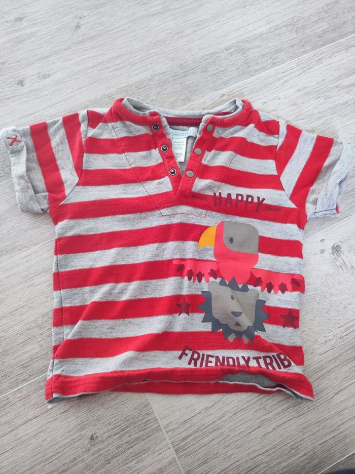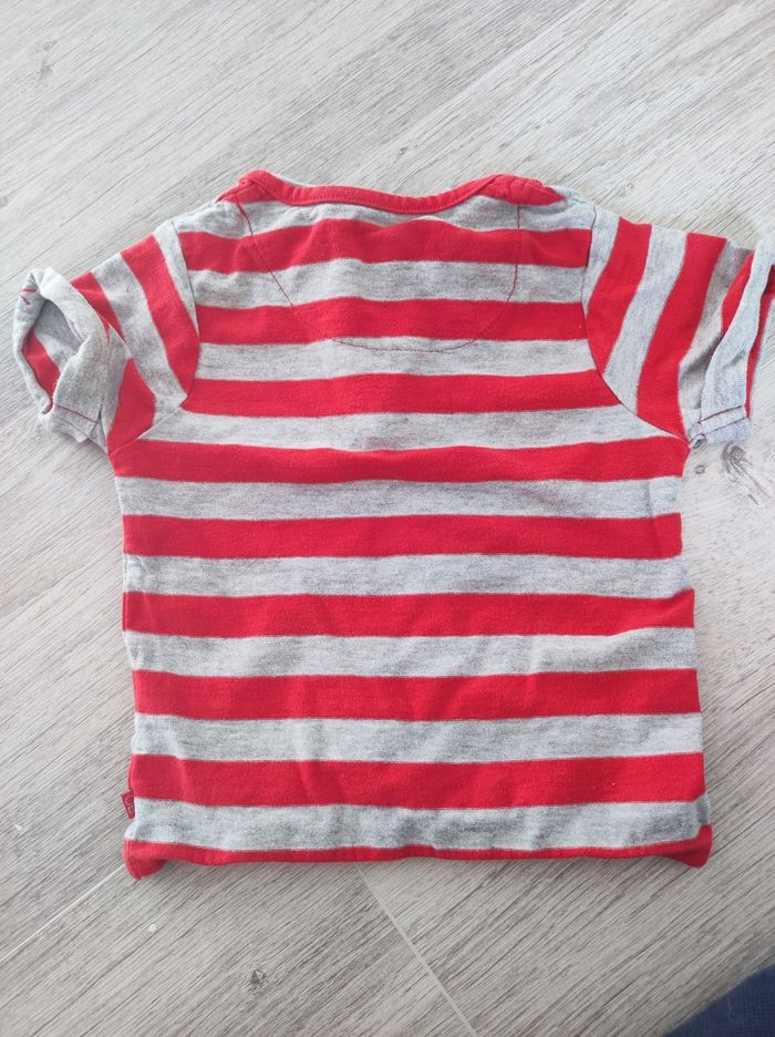 T-shirt 12M, rayé gris et rouge, très bon état.
