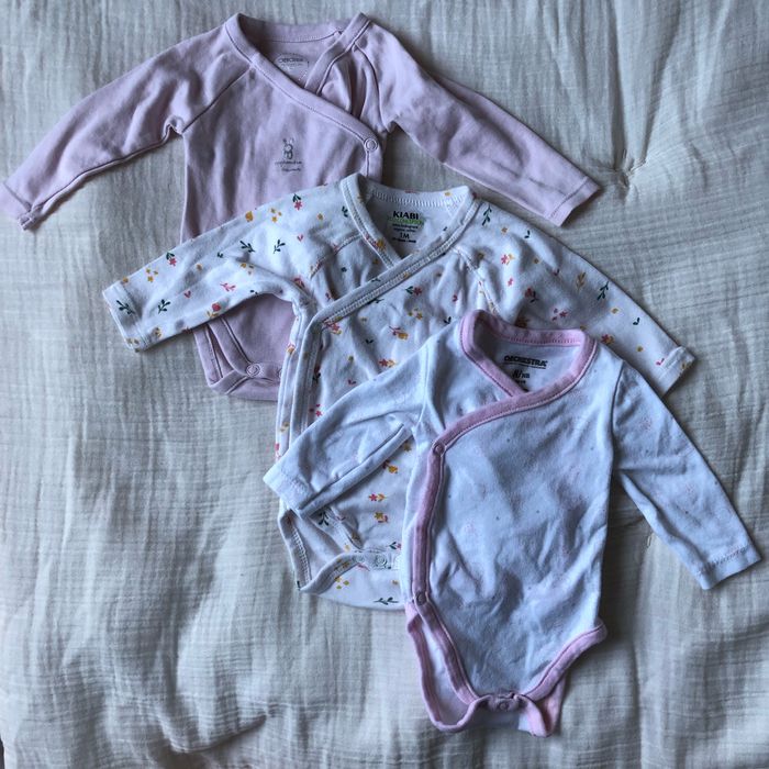 Lot de 3 bodies 0-1 mois Bon état 1 body orchestra 0 mois 1 body kiabi 1 mois 1 body obaïbi 1 mois