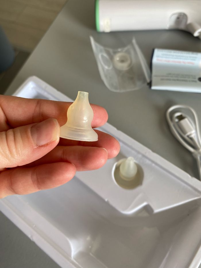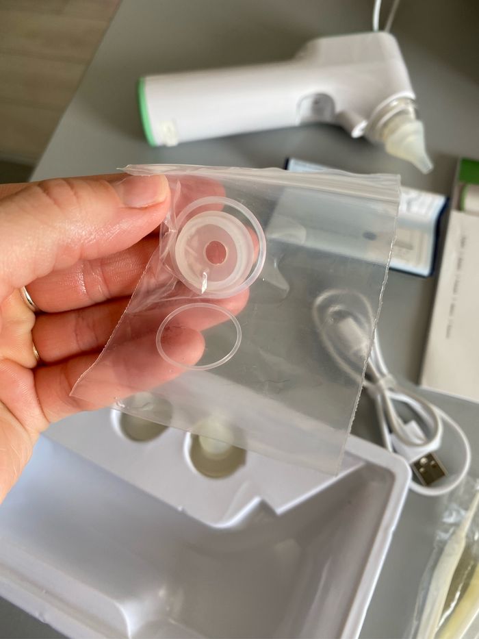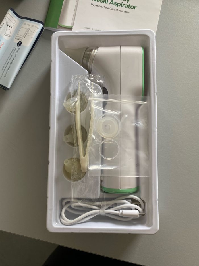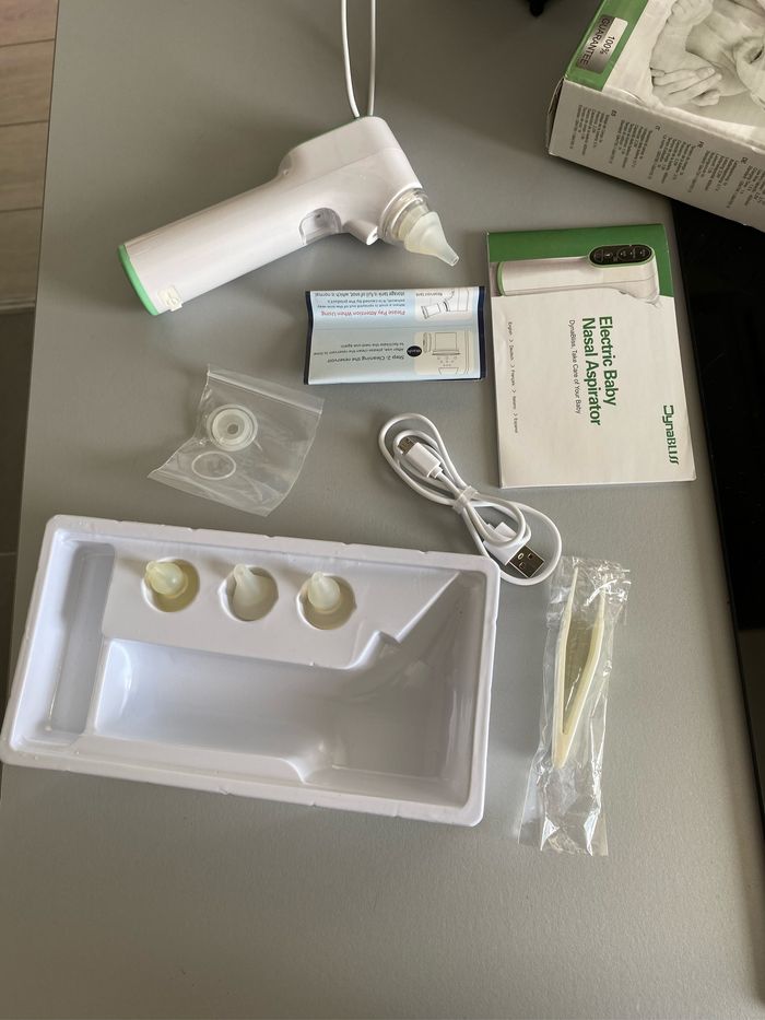 Aspirateur nez bébé utilisé 1 fois avec un embout donc tout les autres sont neuf 3 vitesses / lumière / chargeur / embouts différents selon l’âge de l’enfant