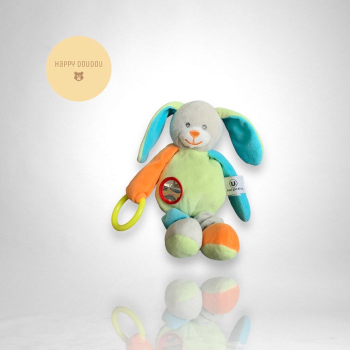Peluche d'éveil lapin bleu vert U tout petits E19 - photo numéro 1