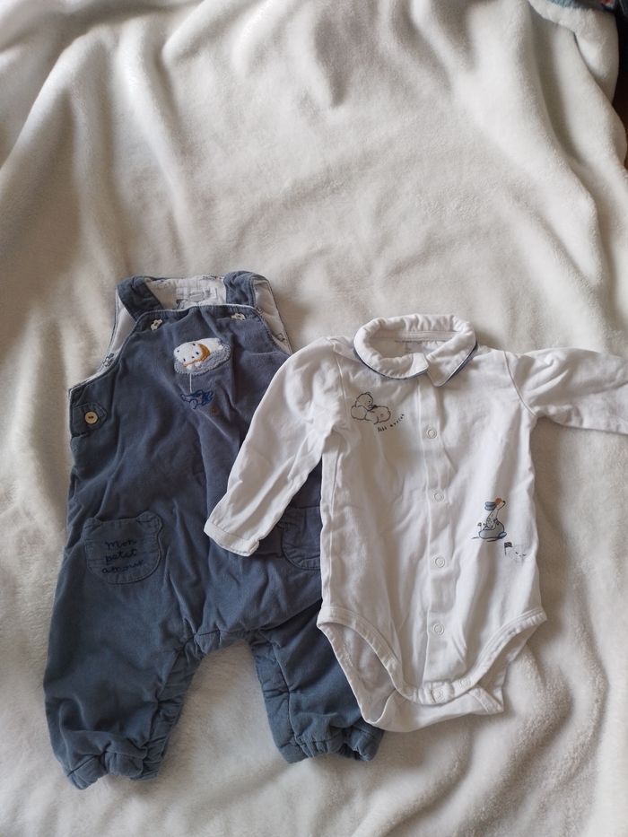 Vends salopette sergent major en taille 3mois juste lavé mon fils n'a pas eu le temps de la porter. État neuf. Couleur gris bleu