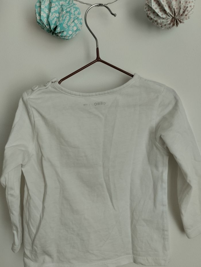 T shirt manches longues, boutons à l'épaule. Taille 18 mois. Marque Gémo. Très bon état.