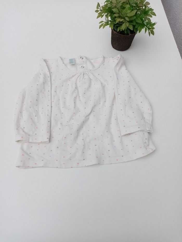 Tee-shirt blanc à pois, fille, 18 mois, obaibi - photo numéro 1