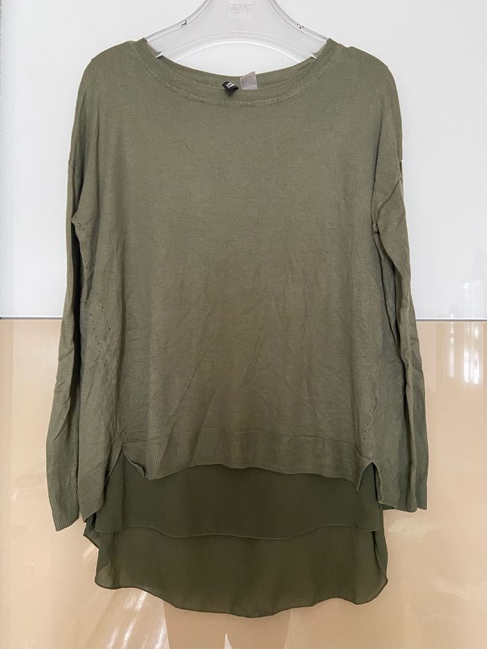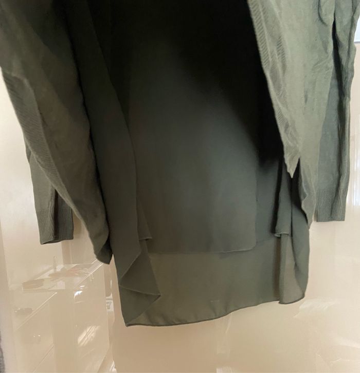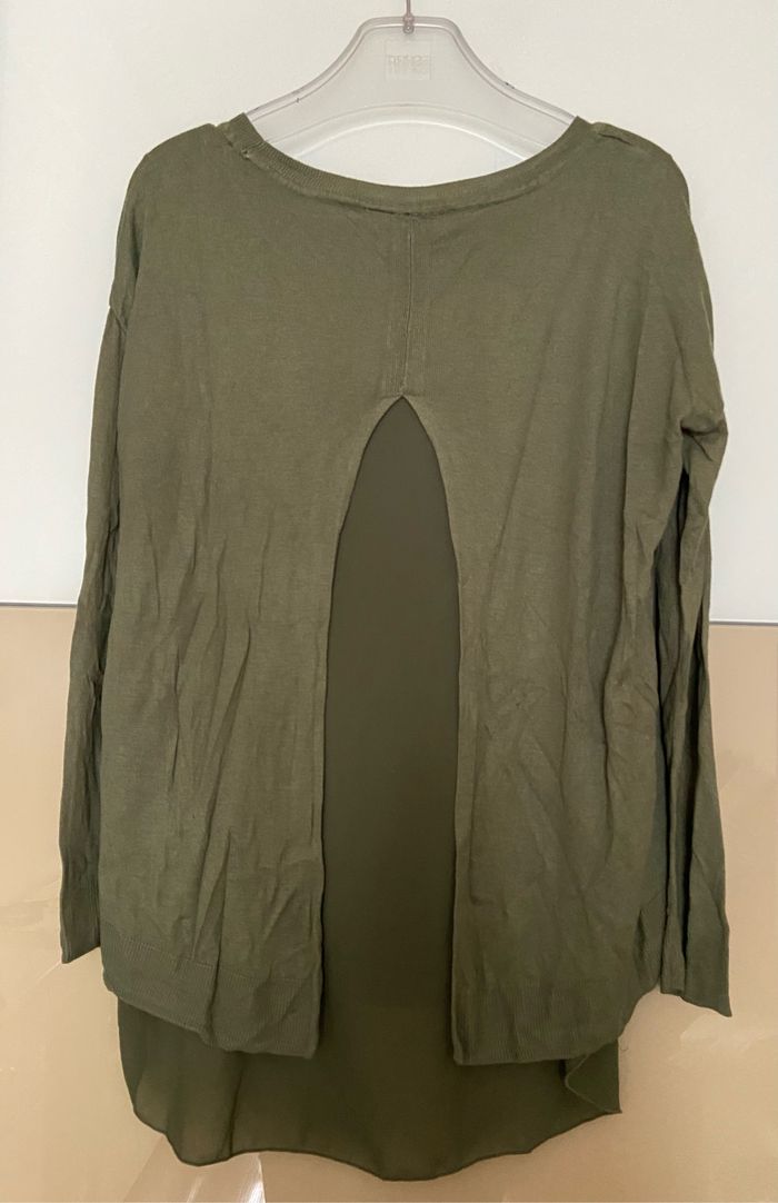 Pull ample 2 en 1 Intérieur polyester Extérieur viscose acrylique Kaki