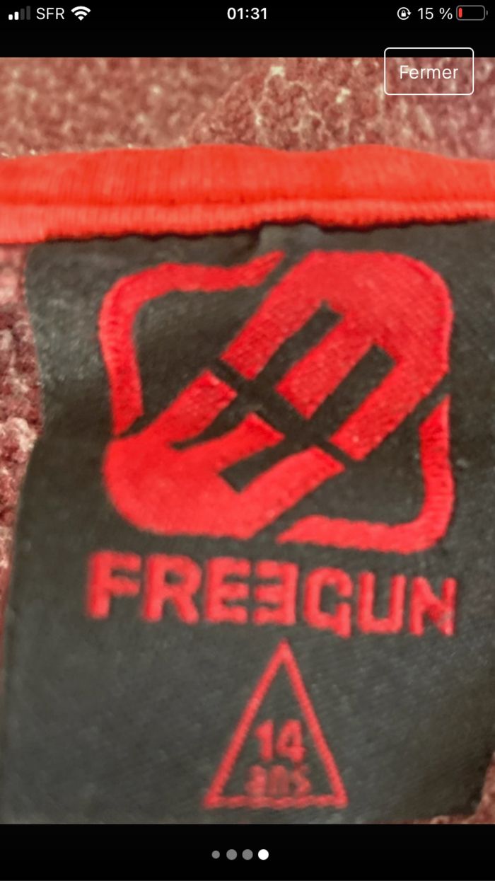 Bonjour Je vend ce pull freegun taille 14 ans, défait d’usure