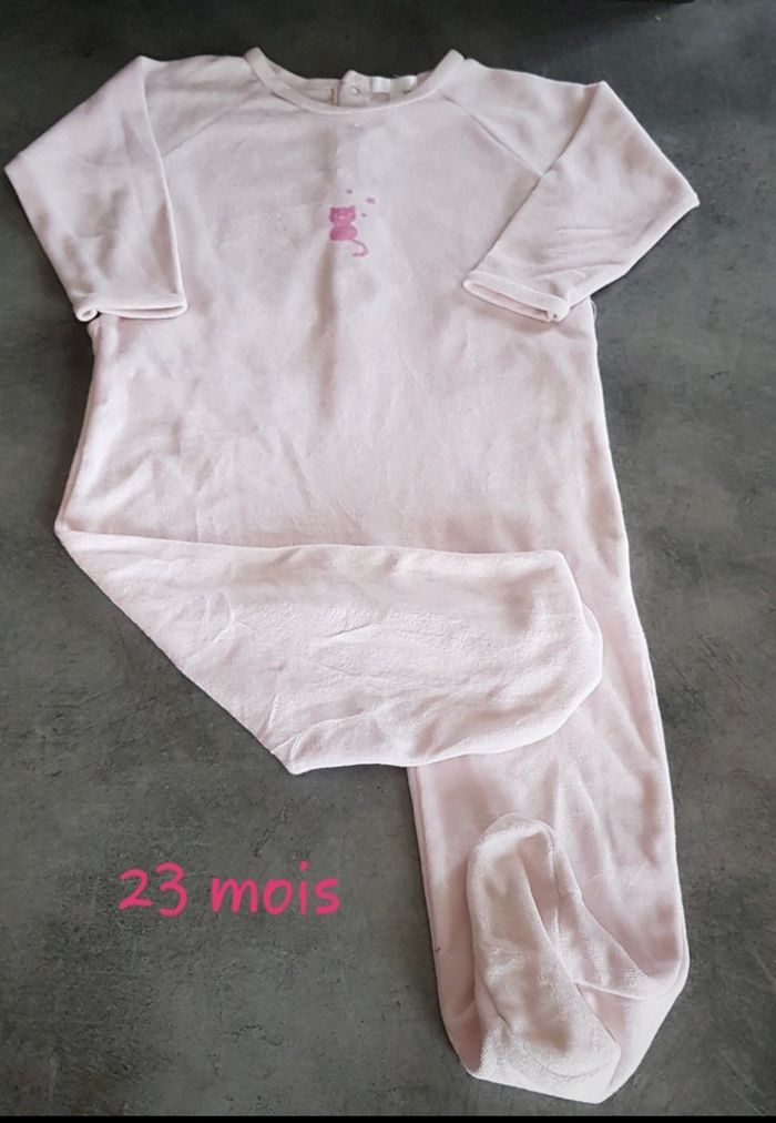 Pyjama 1 pièce en velours rose pâle avec un petit motif sur le devant.
