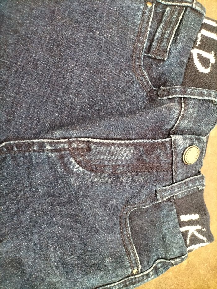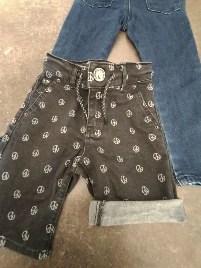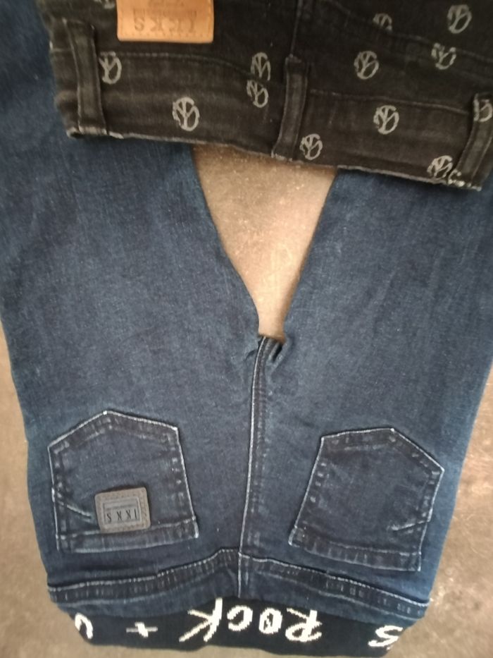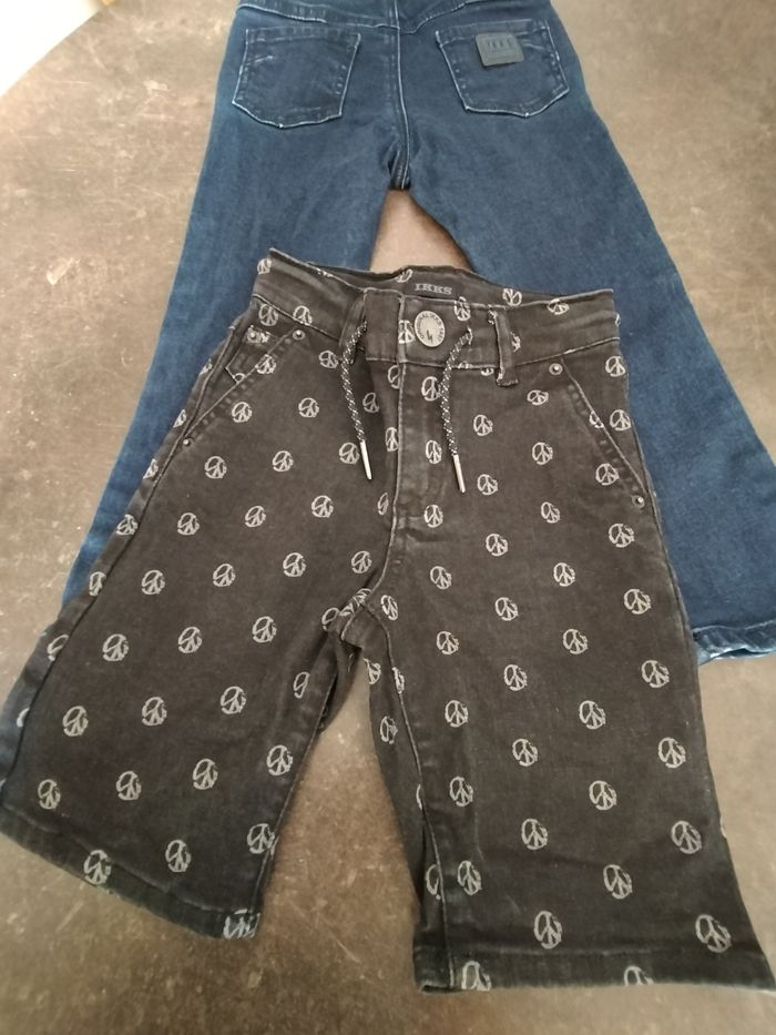 Lot garçon en 6 ans comprenant 1 short en jean noir et blanc, taille ajustable, et liens. 1 jean souple, taille élastiquée et ajustable. Ikks En très bon état, comme neuf