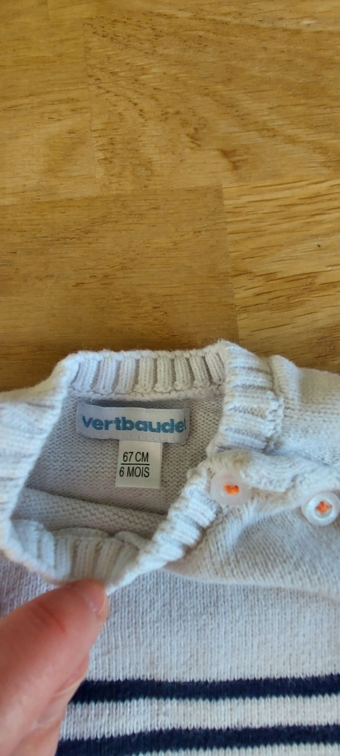 Ensemble mixte 6 mois Vertbaudet Très bon état mais le pantalon est légèrement délavé devant, se voit à peine. (niveau fermeture voir dernière photo)
