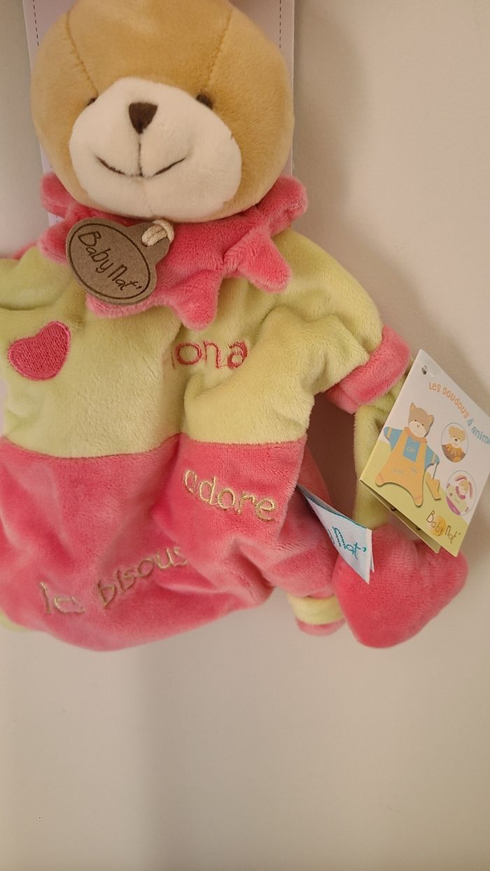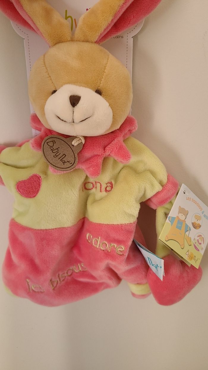 Babynat Doudou lapin fiona adore les bisous vert et rose
