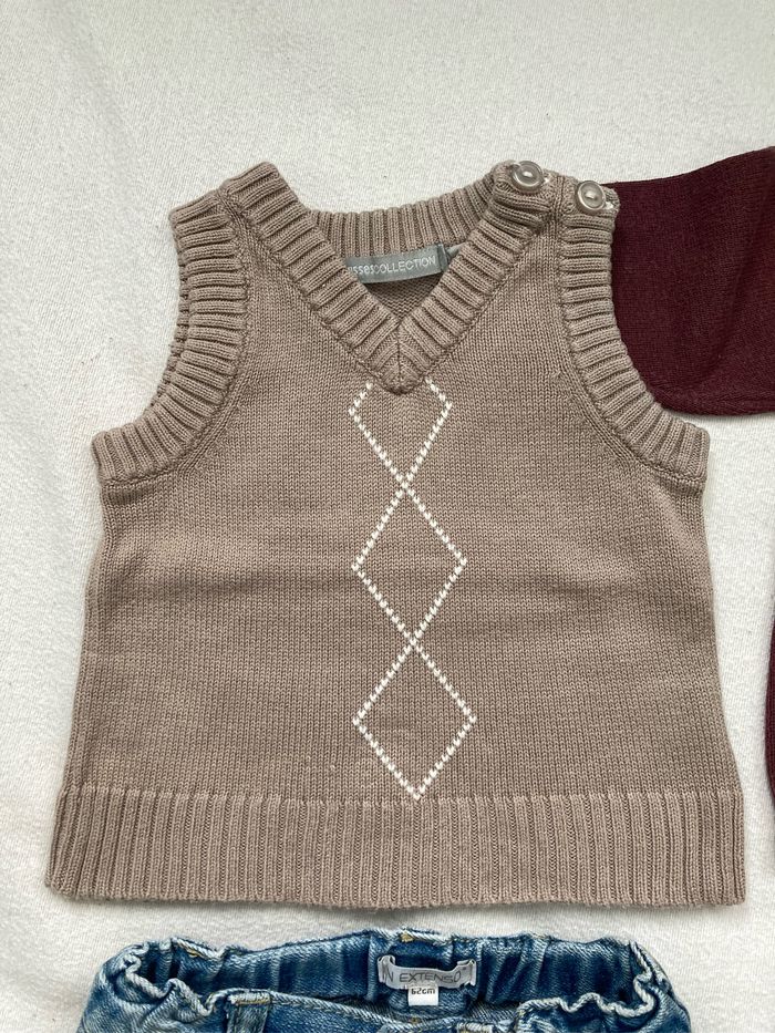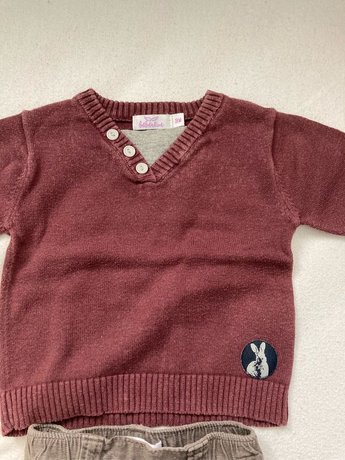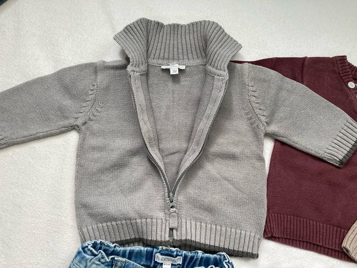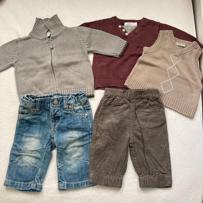 Lot 3 mois mi-saison : - pantalon/pantacourts jean in extenso (BE) - pantalon/pantacourt velours kitchoun (BE) - pull sans manches 3 suisses collection (TBE) - gilet gris Kimbaloo boy (TBE) - pull bébé rêve (BE) 3€ le lot, possibilité de déloter a 1€ l’article (FlopacaBoite3moiscarree) Envoi au choix via mondial Relay, relai colis ou chronopost