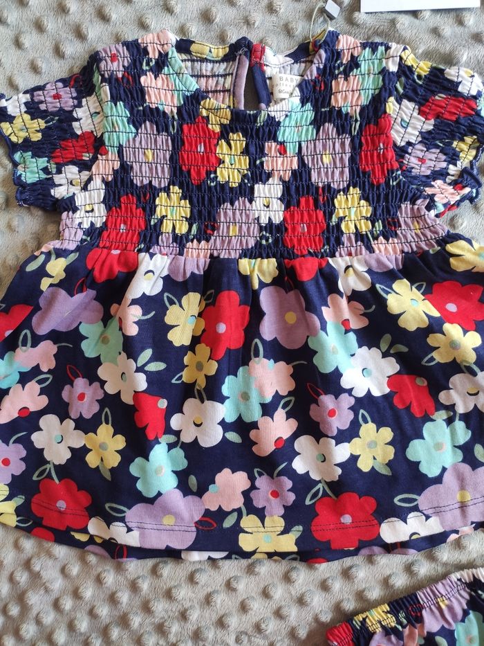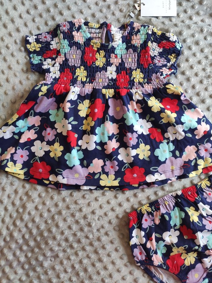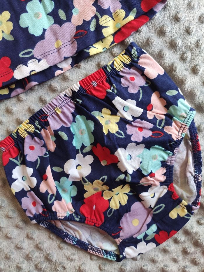 Ensemble robe fleurie + bloomer bébé fille 12 mois 80 cm