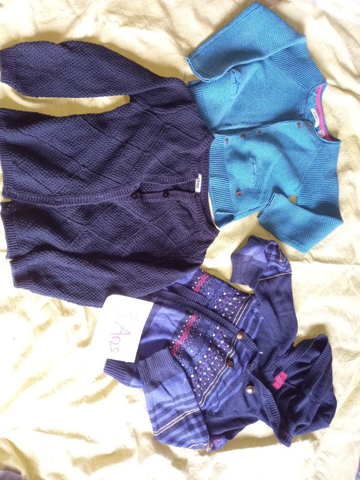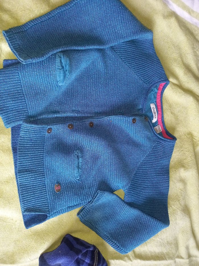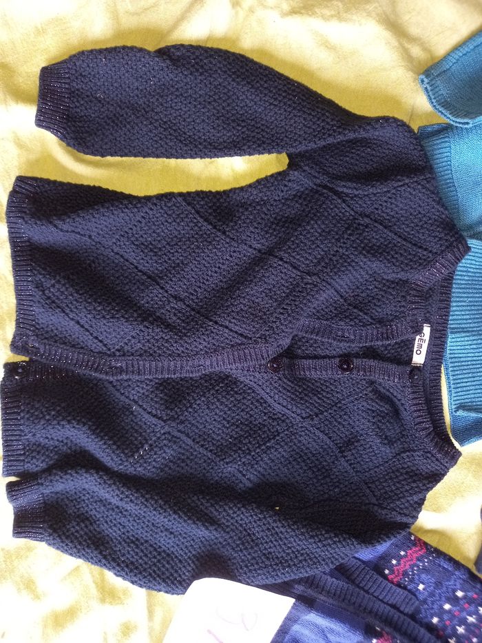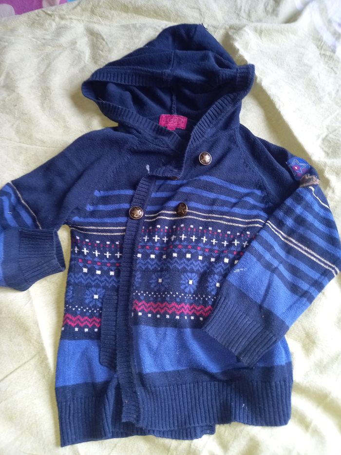 Lot de 3 gilets 1 bleu foncé pailleté 1 bleu moyen epais okaidi 1 à capuche la compagnie des petits 3 ans