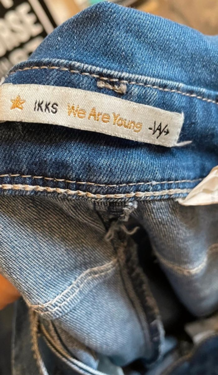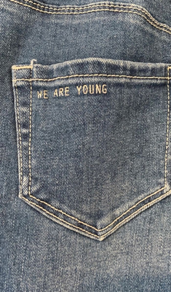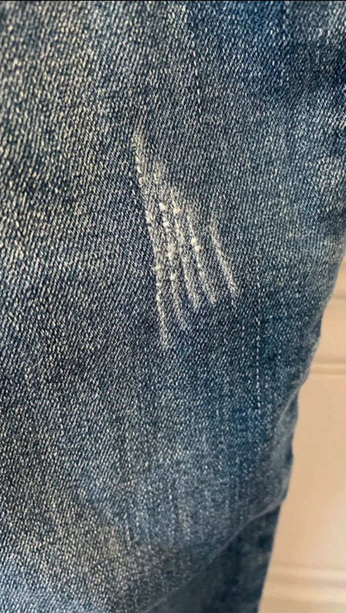• griffure d’origine sur la poche et la jambe • phrase inscrite ( discrète ) sur la poche arrière • étiquette encore présente