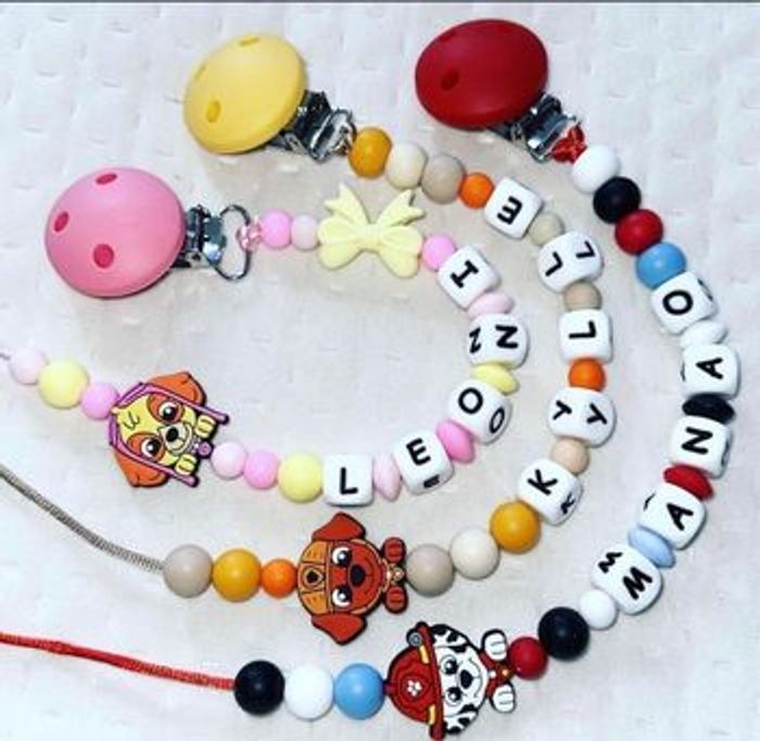 Attache tétine personnalisé en silicone ou en bois au souhait de l’acheteur . Personnalisable au choix de l’acheteur que ce soit la couleur comme le prénom ou le thème . Le fil est doublé pour plus de sécurité tout le long de l’attache tétine. N’hésitez pas à me demander et regarder mon dressing. Une photo vous sera envoyée avant l’expédition pour vous ayez un aperçu du rendu. Tous les produits sont réalisés avec du materiel spécial conçu aux bébés , enfants.