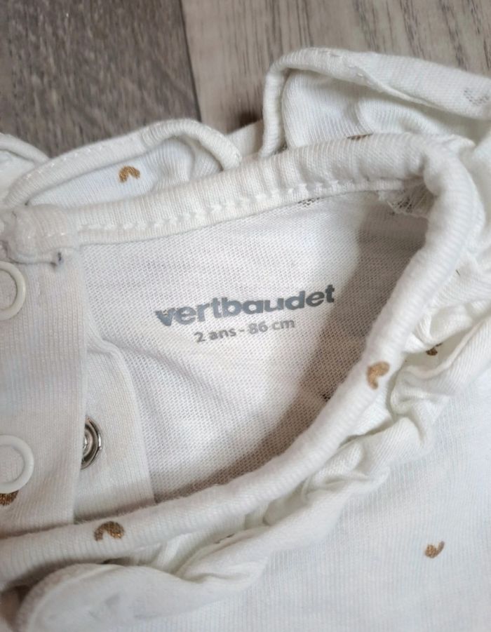 🌸 t-shirt Verbaudet avec des petits cœur . 100% coton 🏷 taille 12 mois 86 cm ℹ️ en très bon état comporte une petite tache visible sur la dernière photo (Cel)