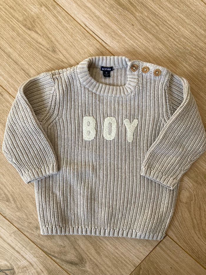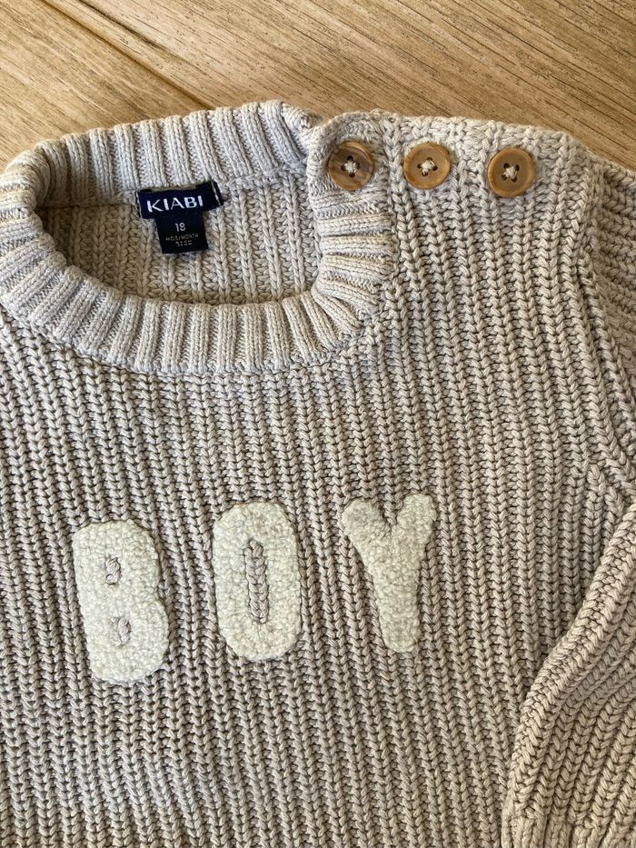 Joli pull beige écriture blanche Boy Taille 18 mois Marque Kiabi État excellent