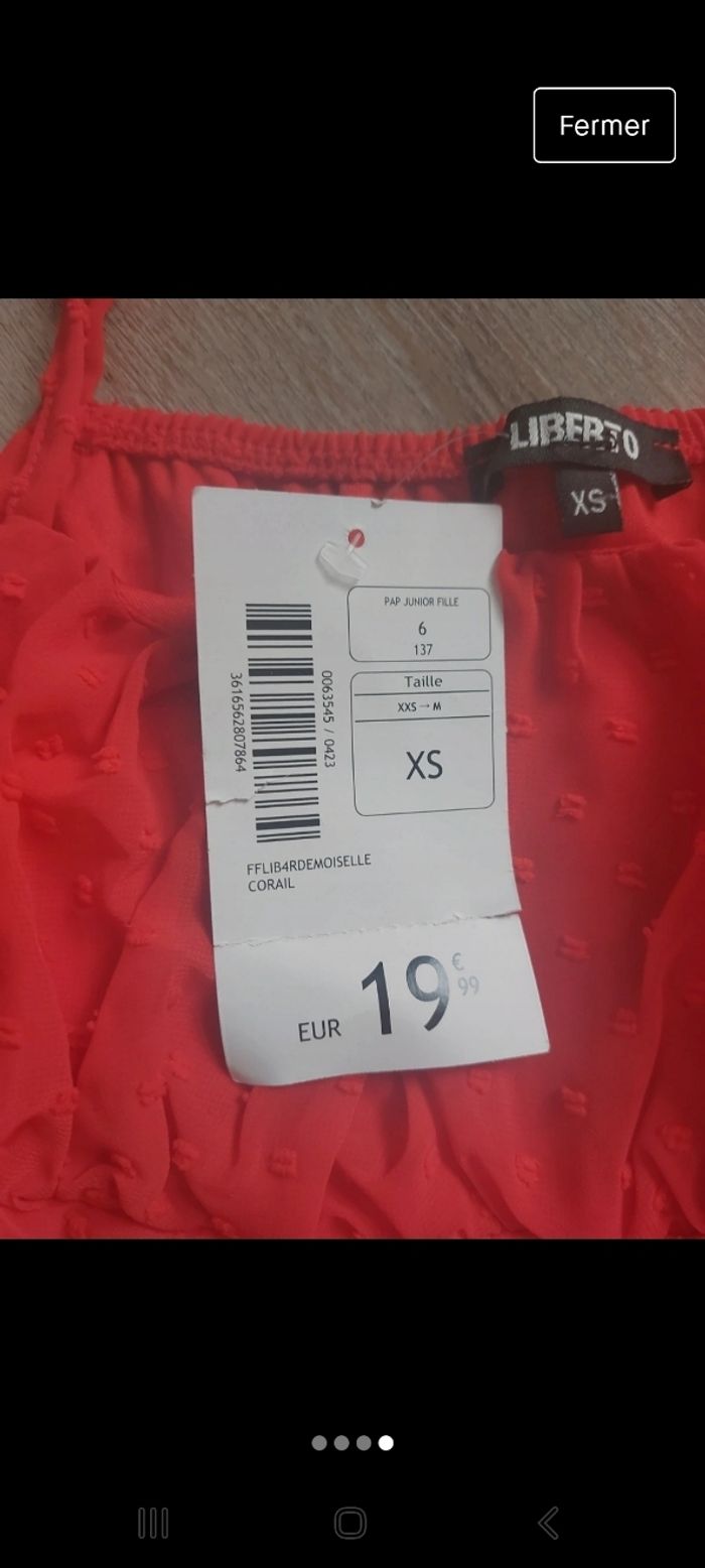 Je ne sais pas à quoi correspond la taille car c'est noté xs mais aussi 6 /137 donc je vous note les mesures Longueur environ 74 en demarrant du haut de la bretelle Aiselle environ 38 cm