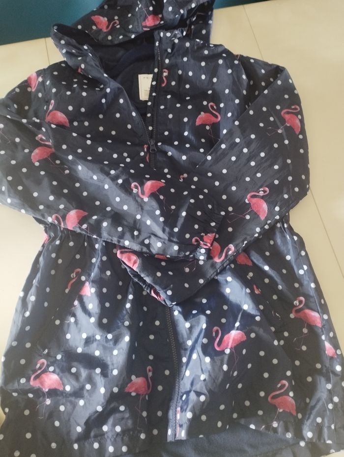 En tbe manteau imperméable de marque Primark veste en jean et chemisier bleu Vertbaudet et blouse noire Kiabi