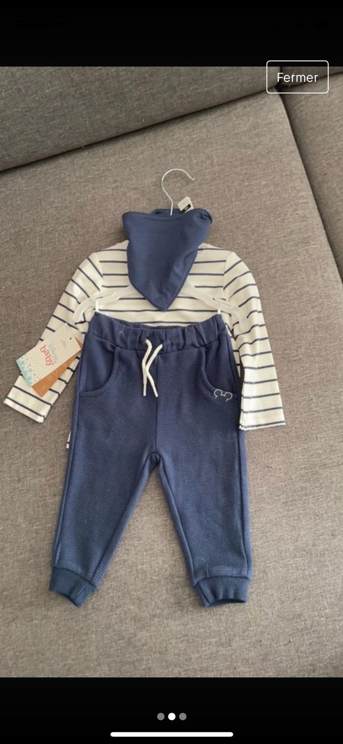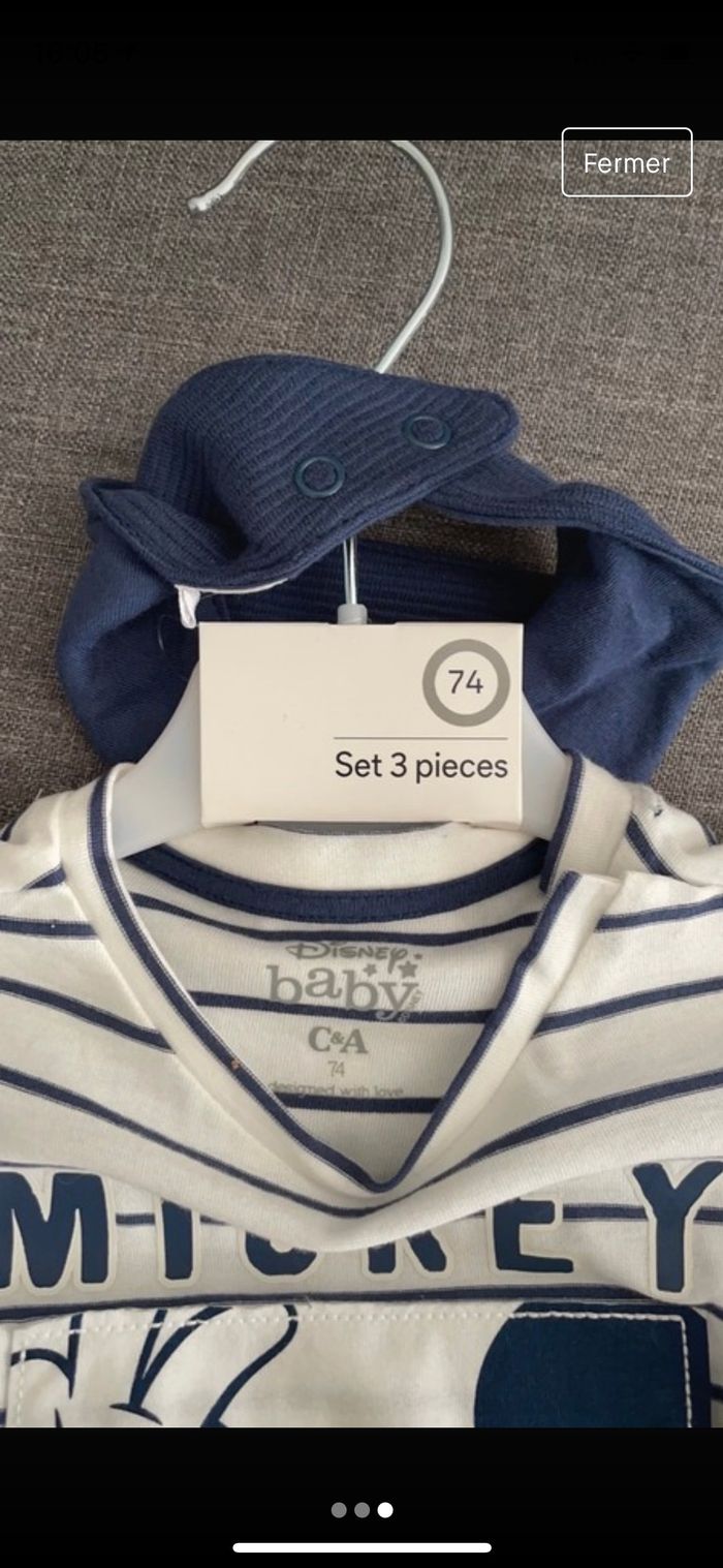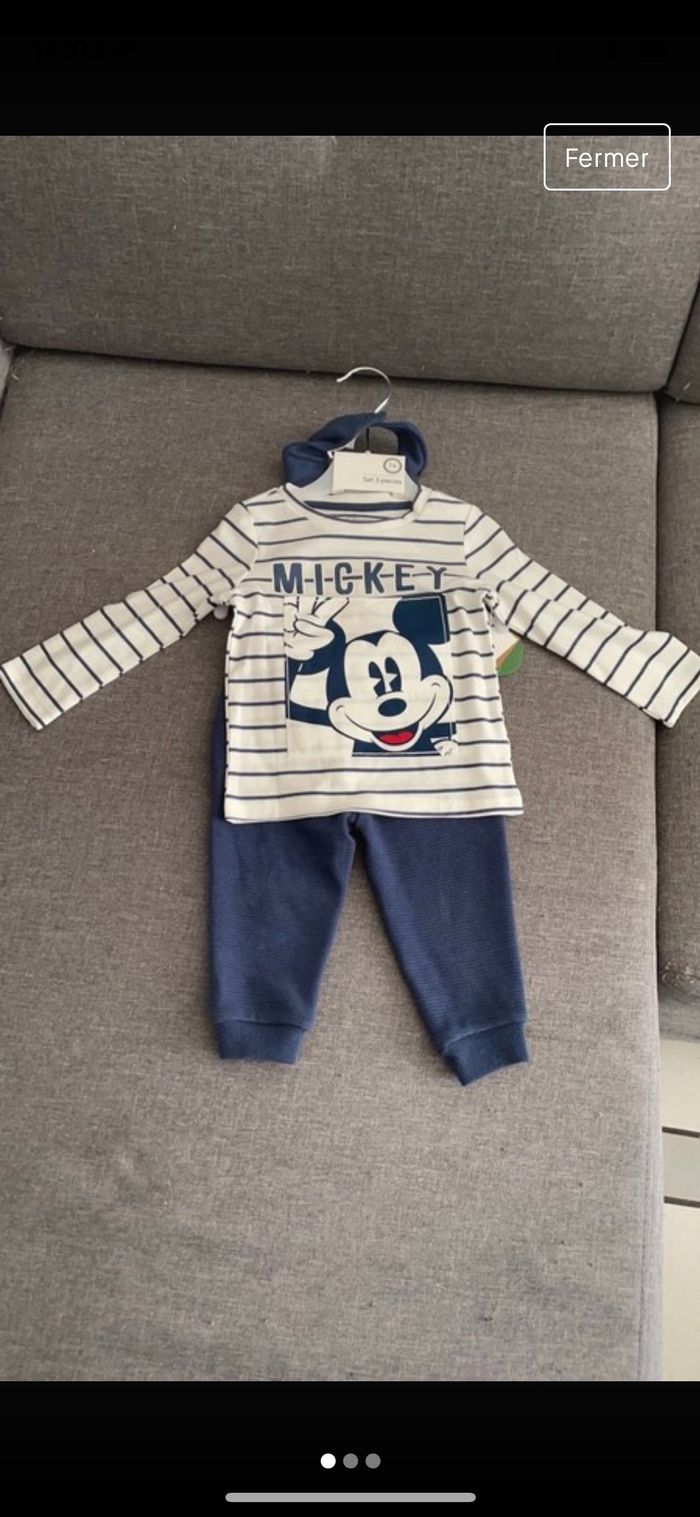 Bonjour, Je vends un ensemble Disney Mickey taille 6mois. Neuf