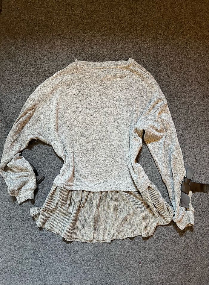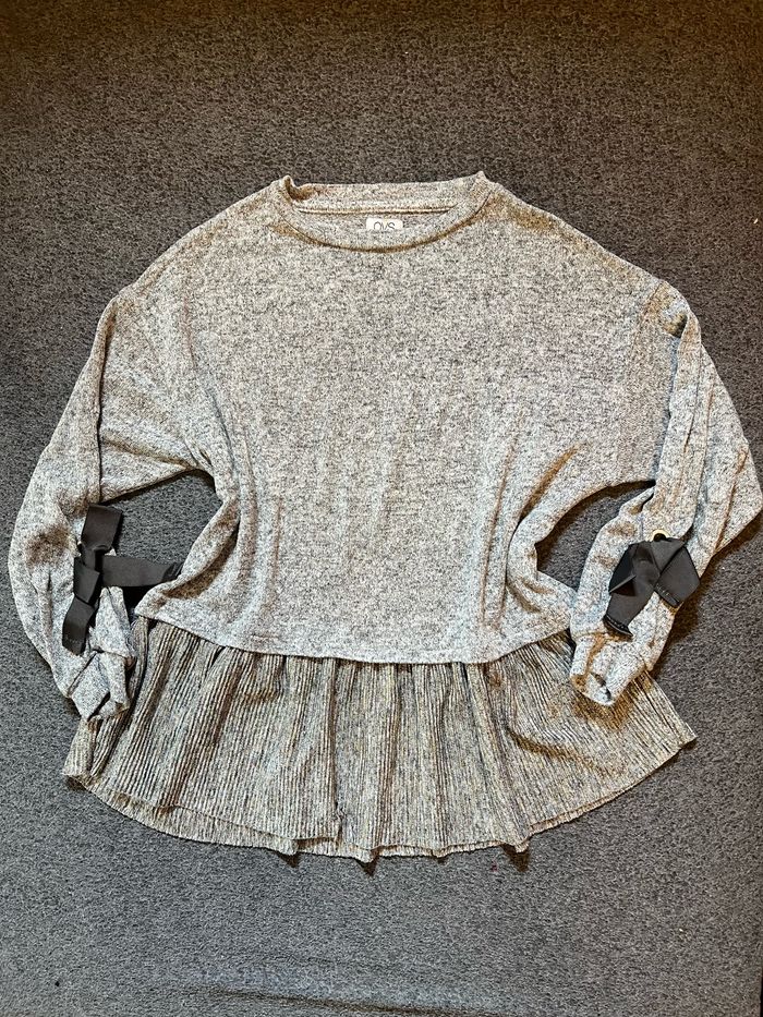 Pull léger à volants et petits noeuds, taille 9-10 ans, 140cm.