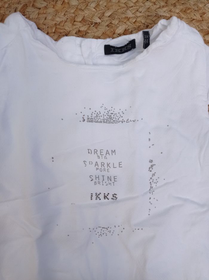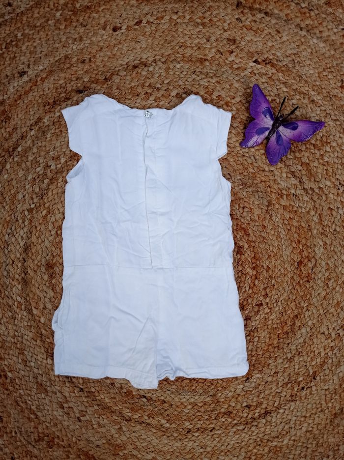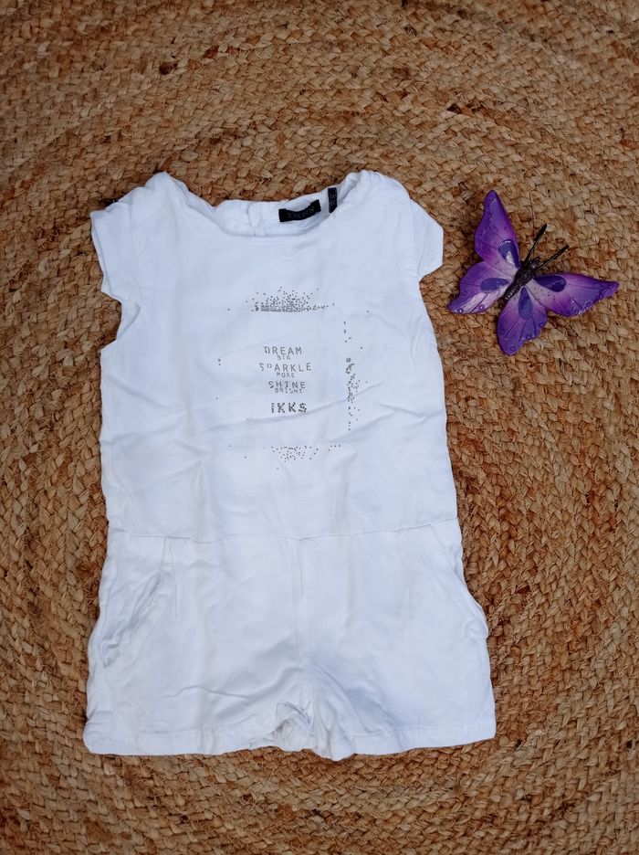 IKKS Combinaison short Blanche Imprimé gris 2 poches Fermeture dos pressions 1 bouton Taille 3 ans #douceur_03ansfille C20