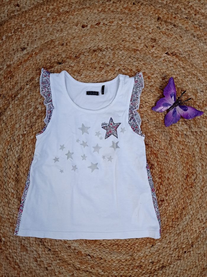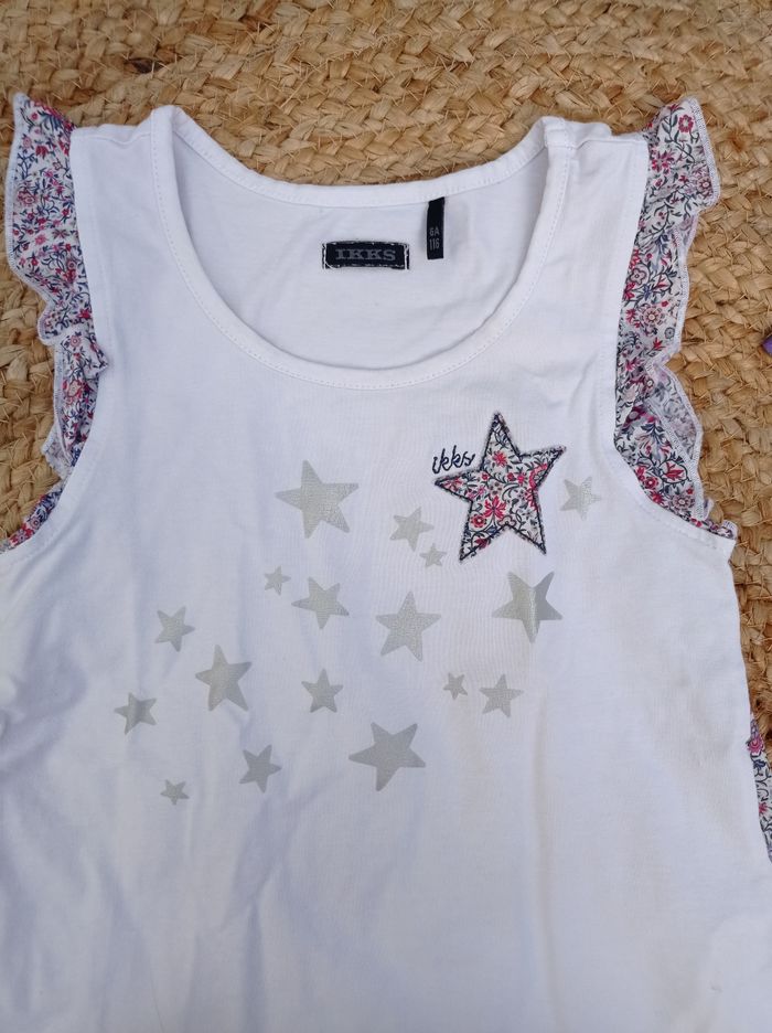 IKKS Débardeur Blanc Impression étoiles argentées Broderie étoile fleurie Dos motif fleurit Taille 6 ans 116 cm #douceur_06ansfille C20
