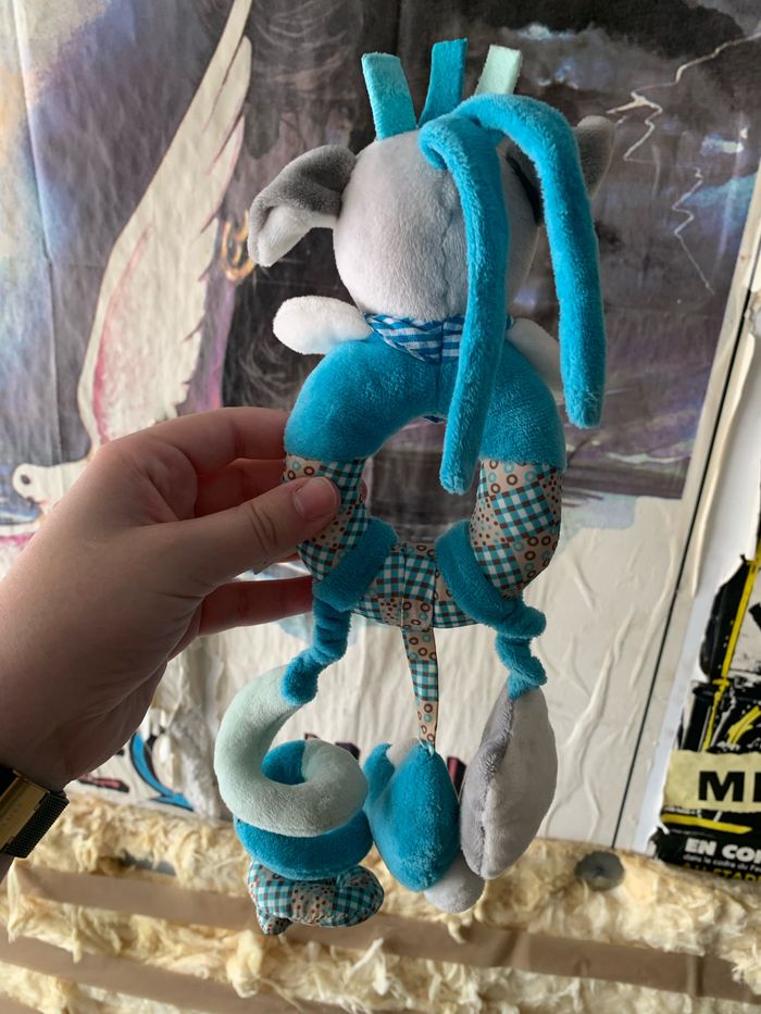 Hochet suspendu en bon état, quelques petites taches peu visible
