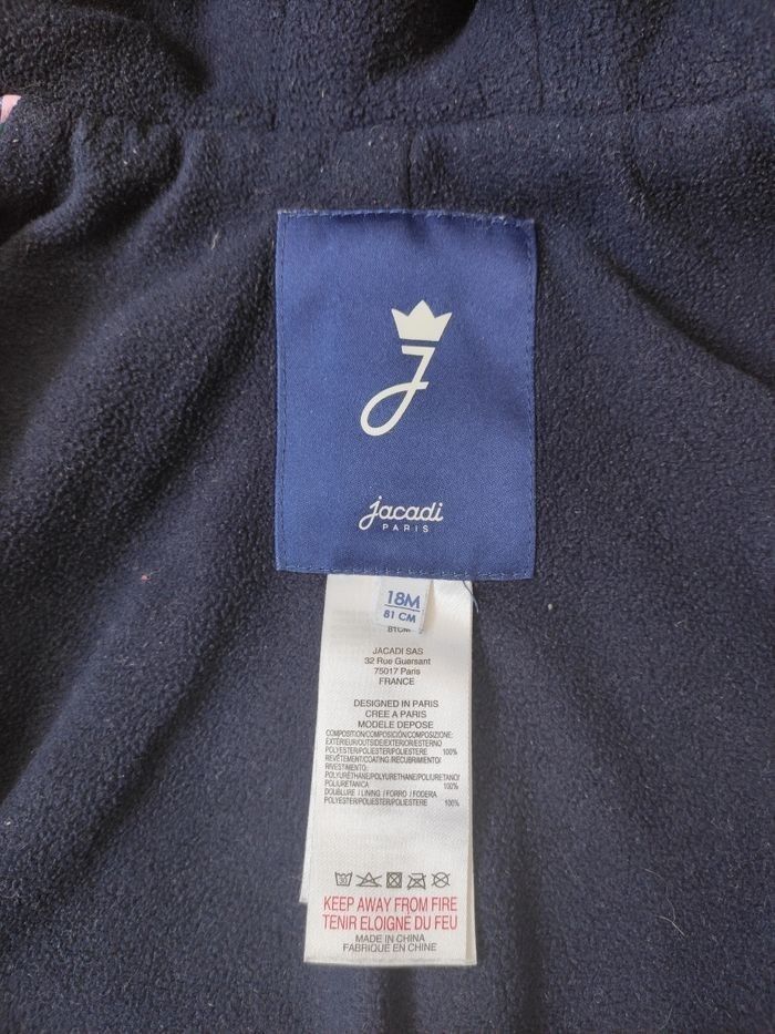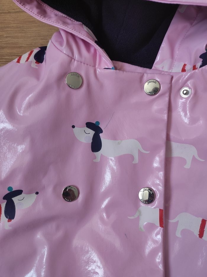 Imperméable a capuche rose dessin chien Jacadi 18 mois Très bon état malgré petit signe d'usure au niveau d'une pression, voir photo Taille grand