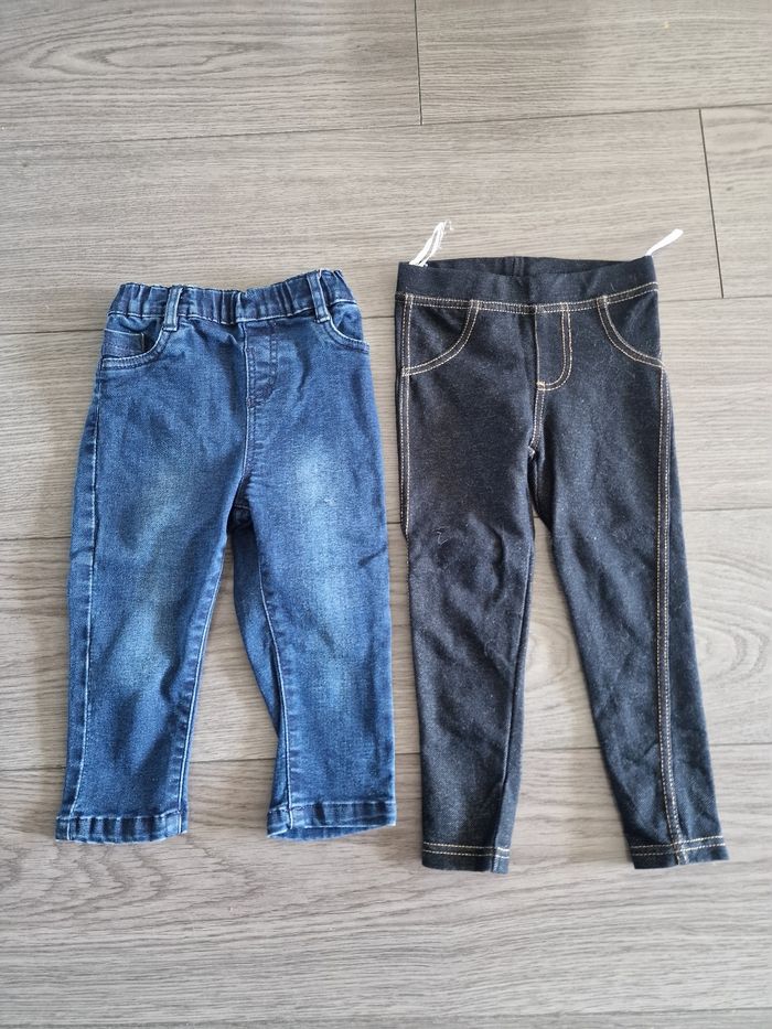 Lot de 2 pantalons garçon ou fille 24 mois en très bon état. Jeans bleu de La Redoute. Leggings stretch façon jeans couleur bleu tres foncé de Zeeman.
