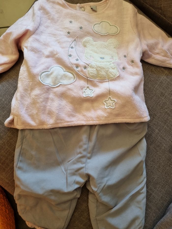 Ensemble pull et pantalon rose et gris