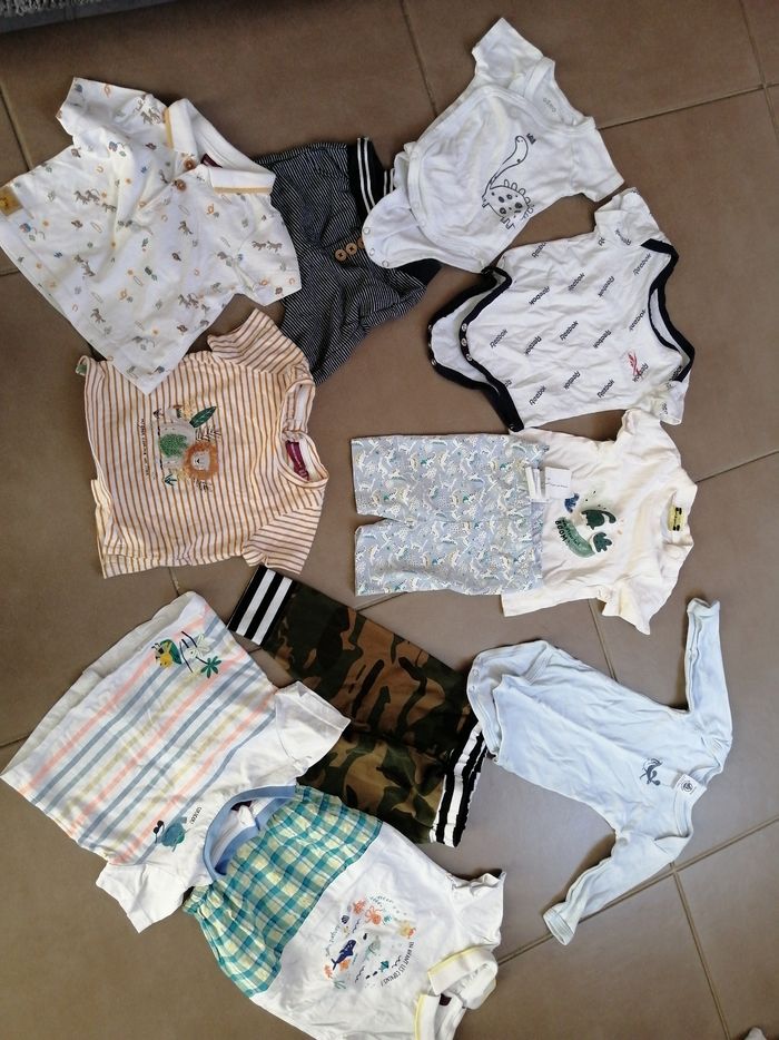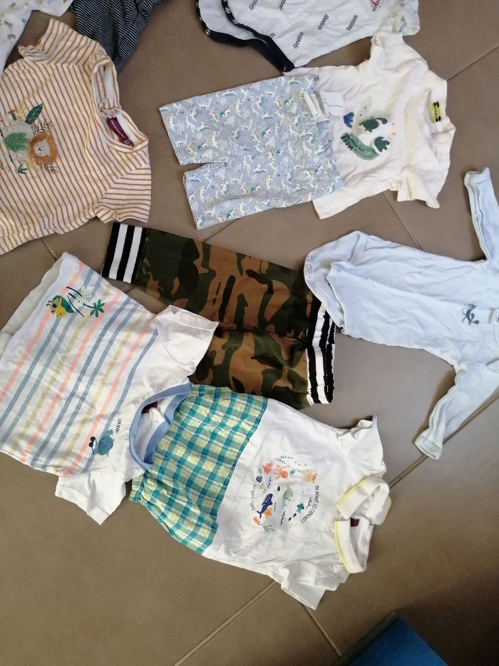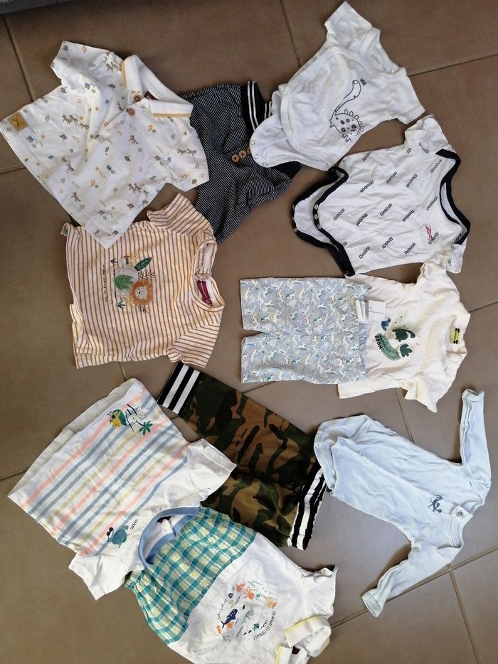 2 bodies manche courte 1 bodie manche longue 2 pantalon 1 short 1 combinaison short 4 tee-shirt Multimarque: sergent major, gemo petit bâteau, tape à l'œil...