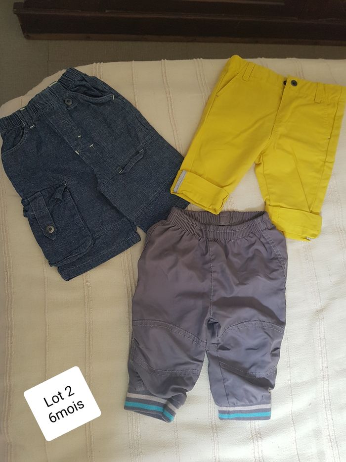1 pantalon style jean 1 pantalon droit jaune 1 pantalon gris 3 tee-shirts manches courtes 1 pantalon jogging 1 short rouge